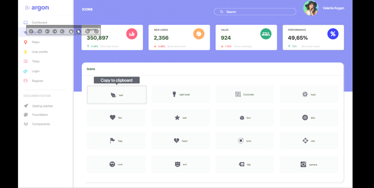 Argon 是一款全面的后台系统软件,它的配色新颖,运用大胆的撞色风格,结构清晰。运用了大量的图标数据和统计,和卡片表格展示。以及信息录入,组件支持。以及开发中的HTML参数和设计图标管理。